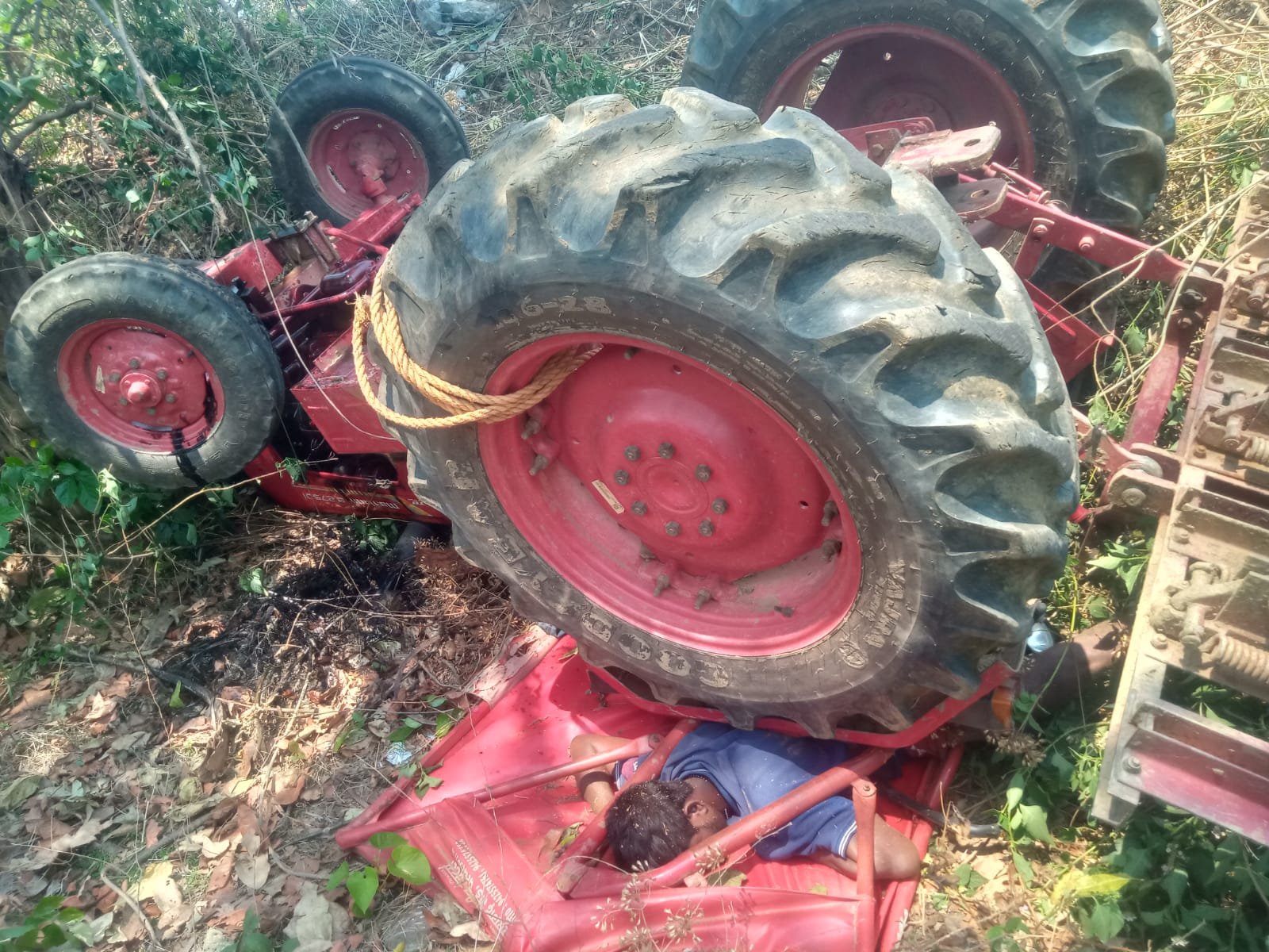 ଟ୍ରାକ୍ଟର ଭାରସାମ୍ୟ ହରାଇ ଓଲଟାଇଲା, ଚାଳକ ମୃତ ଓ ଜଣେ ଗୁରୁତର